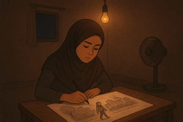 Langit Jakarta sore itu tampak seperti cermin kusam yang memantulkan kelelahan. Jalanan padat, klakson bersahutan, dan orang-orang berjalan cepat seolah waktu sedang mengejar mereka. Di antara keramaian itu, seorang gadis berseragam abu-abu putih berdiri di halte busway. Namanya Naira. Usianya tujuh belas tahun, dan di tangan kanannya tergenggam tas ransel yang mulai sobek di ujungnya….