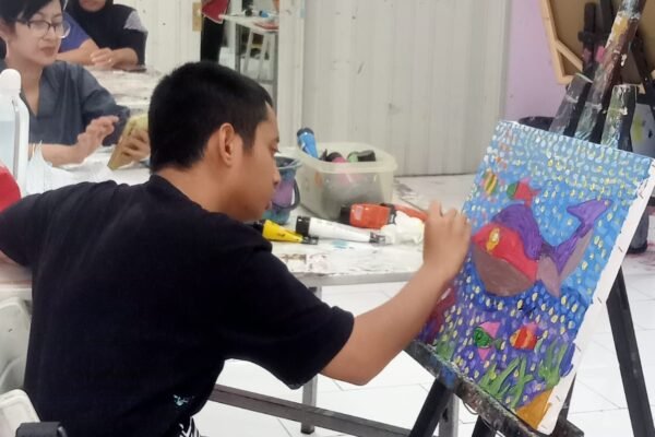Penulis: Excella Annaisha Putri Prasya, siswi SMA Negeri 89 Jakarta Tidak semua kisah lahir dari kata-kata. Ada yang tercipta dari sapuan kuas dan percikan warna. Bagi Muhammad Salman Farisyi (16 tahun), penyintas spektrum autisme, kanvas adalah ruang bicara. Warna adalah suaranya. Dulu, amarahnya mudah datang dan sulit fokus. Kini, di hadapan kanvas, ia menemukan damai….